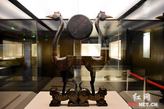 鼓,是一种常见的打击乐器。那么,两千多年前的鼓是什么样的呢?11月10日,记者在湘潭市博物馆湘潭故事展厅里,见到了湘潭境内出土的唯一一件木质乐器——虎座鸟架鼓。它距今已有两千二百多年的历史,是荆州楚墓中出土的最为典型的文物。