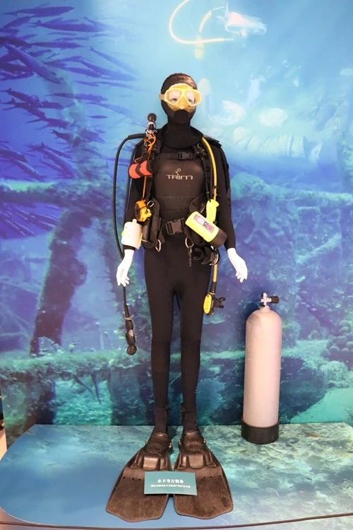 除了对“海上丝绸之路”本身的探索外,笔者注意到此次展览中同样隐藏着另外一条暗线——水下考古。从展牌照片中对水下考古工作的真实再现,到视频短片中对现场打捞的详实记录,到展览现场对古代沉船的精心复原,再到展厅出入口对水下考古工作者的服装展示,展览同样强调水下考古工作在“海上丝绸之路”的学术研究中的重要作用,让观众看到精美的展品、展览背后,考古工作者所付出的努力。