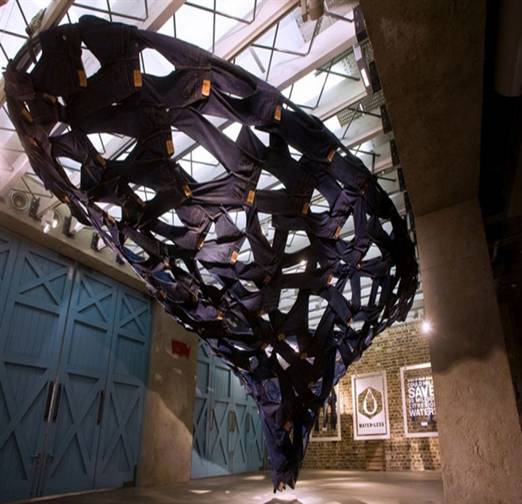 牛仔裤品牌李维斯创造一个别出心裁的牛仔裤雕塑,此作品现在正在伦敦的摄政街展出。