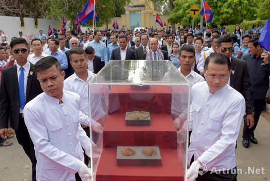 近日,在从著名丛林神庙中惨遭劫掠数十年后,一套古老的吴哥时代珍贵黄金饰品终于回归柬埔寨。