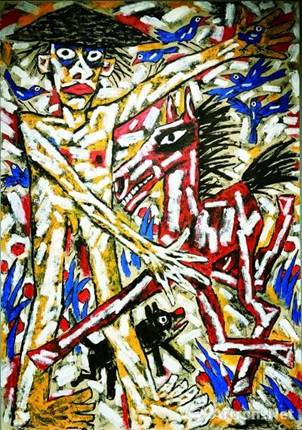 野山坡(油画)2013年董克俊 近年来,风起云涌的中国当代艺术在众说纷纭的多元表达中走向了价值失范与界限无边。