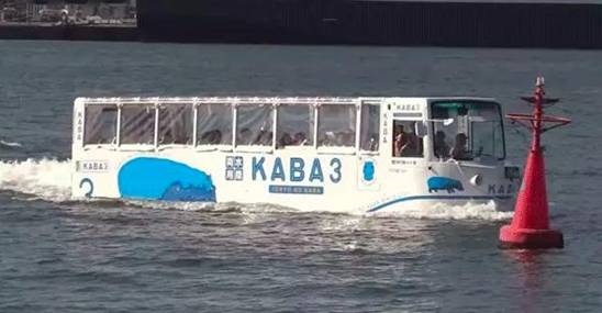 水陆两栖公交名为 Tokyo No Kaba,由日本富士急行公司推出,目前已经在东京台场正式运行。