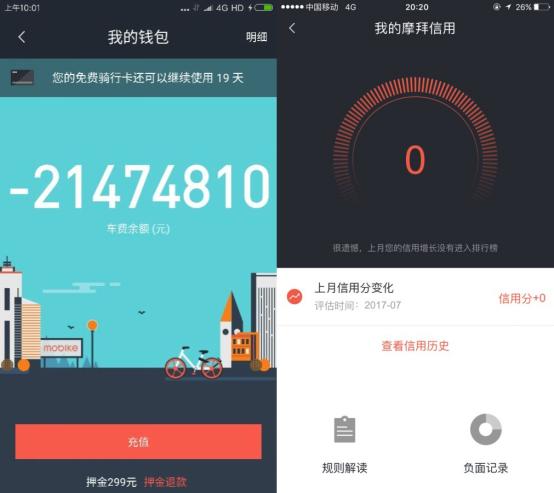 18日晚,摩拜信用分和余额系统突发故障,造成摩拜APP大面积崩溃。