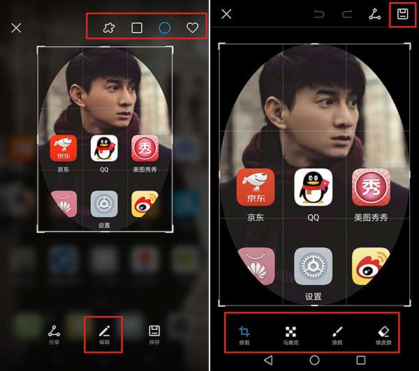 绘画技能给力的机友可以根据自己的喜好绘制各种形状。手残党也不必担心画的太丑,绘制完毕之后,右上角有方形、心形、圆形三种形状可选。点击屏幕底下的【编辑】还能根据需求进行裁剪或者涂鸦添加文字、打码。调整好之后点击保存即可。
