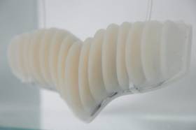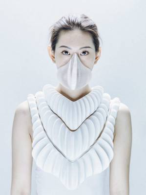 在与 RCA-IIS 东京设计实验室(英国皇家艺术学院与东京大学的国际合作计划)的合作中,来自 RCA (英国皇家艺术学院)的设计师,同时也是材料科学家的 Jun Kamei 提出了一个有趣的解决方案—— Amphibio ,一种 3D 打印服装,由柔软的面罩和身体周围的「鳃」组成,取代了笨重的潜水服和氧气瓶,让穿着者直接从液体环境中过滤出氧气从而进行呼吸。