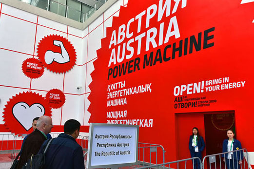 奥地利馆的展示完全是非常规、非展览式的,这种大胆的设计将奥地利馆建造成为了一个“游乐园”,以一种异想天开、别具一格的方式,使人们专注于“人类的能量潜力”这一能源类型上。