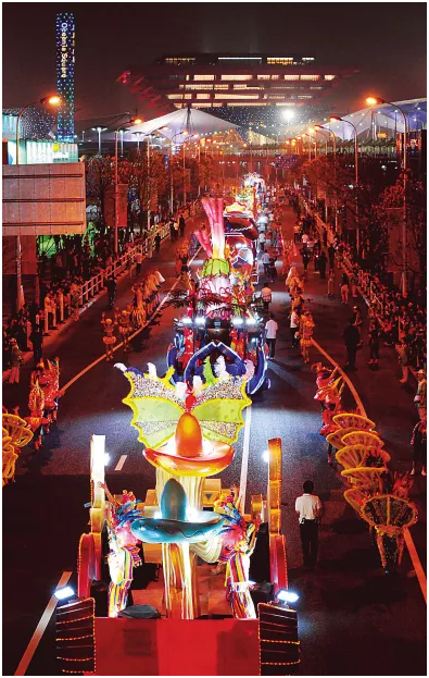 2010年5月1日晚花车在世博园区内巡游