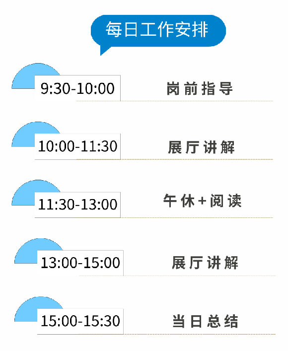 4、上岗前需脱稿背诵讲解词,讲解过程中不建议家长全程陪同。