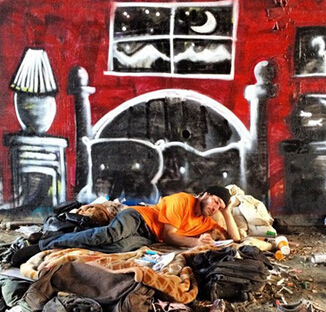 在洛杉矶的贫民窟里,大约有3000到6000名流浪汉。他们无家可归、没有工作,只能在街头风餐露宿。为了让公众更多的关注这些不幸的人们并找到解决方案,日前,一位不愿具名的街头艺术家用手中的喷漆为这里的流浪汉们涂鸦绘出他们心中的愿望——拥有一个家。