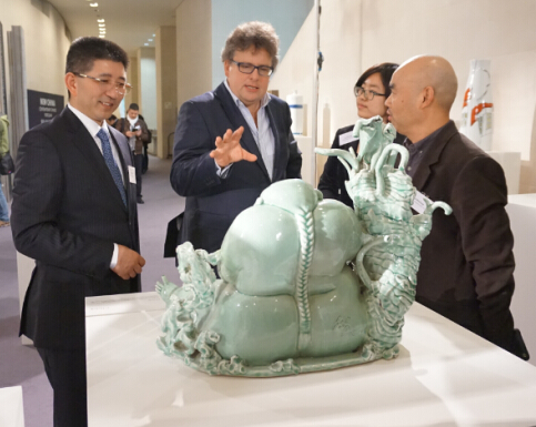 中华人民共和国驻英国大使馆文化处项晓伟公使衔参赞在开幕式后宴请艺术家代表团一行,对此次中国当代陶瓷大英展给予了高度评价,他同时希望中国文化有更多的内涵走入英国,尤其是当代陶艺,是最好的文化交流载体,并能进行更广泛的学术文化交流。