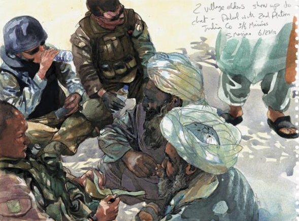“战争是一个多重的环境,有人会欢迎你的到来,有人容忍你的到来,而有人却想杀了你。但我的战争经历概括起来就是等待战争的紧张感。等待简易爆炸装置被引爆或间接射击的威胁。”