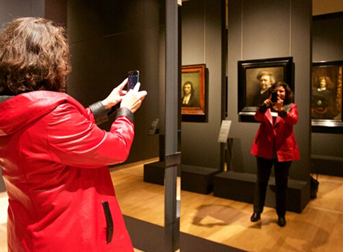 为了让“自拍展”给人更多”自拍感”,莫瑞泰斯美术馆这次展览特意布置了多面镜子,观众看大师如何自拍的同时,偶尔也会看到镜中的自己。策展方介绍说,这种布置的意思是,不管你自拍不自拍,你总会在意自己的形象。
