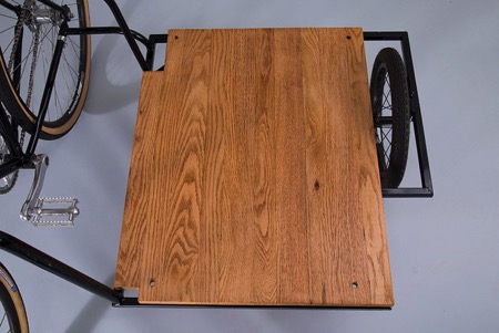 挎斗设计在早期的摩托车上很常见,而这辆自行车很好的继承了衣钵,旁边的小车可承载100磅左右的货物,在日常搬运东西时即方便轻松又非常有型~