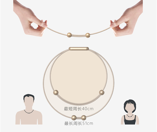 这款项链是通过微角度传感器,实行 BLE 射频与手机实时互动,即可捕捉您的每一个微小动作。它有四款颜色可选,绝对会成全爱美的你的时尚梦。项链采用双卡扣设计,长度可随意调节,直到找到自己喜欢的那个位置。