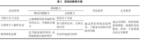 在活动设计阶段,中国铁道博物馆同样针对不同类型观众开发了不同的活动,希望提升参与者的基础能力、科技素养、艺术素养等。(表2)