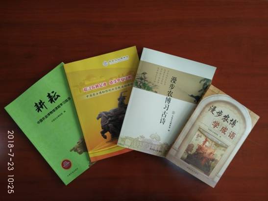 在与学校合作举办活动的同时,农博还积极响应国家政策,结合自身馆藏特色和陈列内容,编写了面向中小学生的《耕耘—中国农业博物馆课程学习绘本》和面向教师群体的《中国农业博物馆校外实践活动课程》等资料性书籍,以及《漫步农博学成语》、《漫步农博习古诗》等农博系列科普读物。在引导中小学生走进农博开展实践体验的同时,进一步在提升中小学生综合素质等方面积极践行。