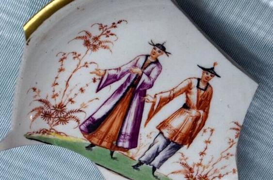 18世纪模仿东亚视觉风格的“中国风”席卷欧洲,成为一种时尚,这片梅森瓷器碎片正反映了当时的时尚风潮。