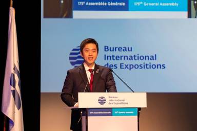 大阪府知事吉村洋文在BIE第175次大会上发表讲话
