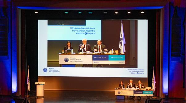 当地时间11月26日,国际展览局在法国巴黎召开第175次成员国大会,共有184个成员国代表出席了会议。会议内容包括听取关于即将举行的世博会工作报告,以及通过对2027年贝尔格莱德世博会的正式认可。
