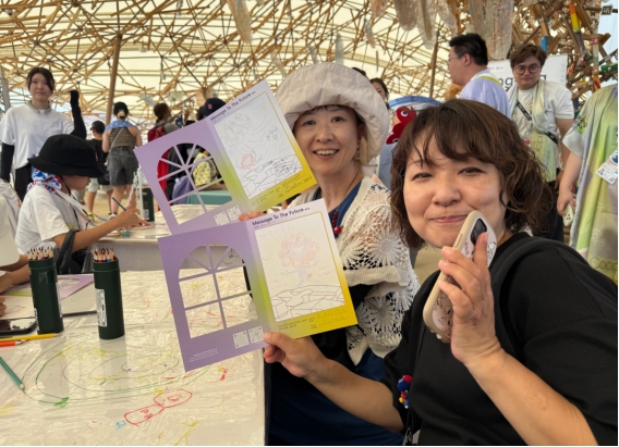 本次活动吸引了大阪世博会游客、20余国展馆友人及组委会成员共同参与,现场创作105件“致未来”作品。大家对自己的作品都很自豪!