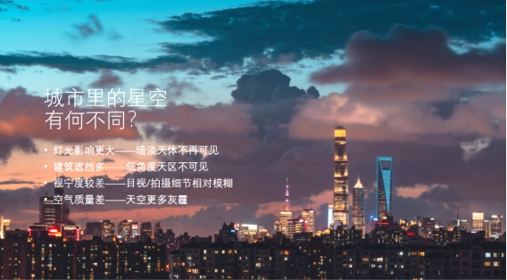 你是否想过在繁华都市捕捉璀璨星空?本期讲座带你解锁上海观星拍星技巧!资深摄影师将分享最佳拍摄时机(无月晴夜、天文事件)、设备推荐(入门级相机到专业器材)及后期秘诀。无需远行,学会在光污染中挖掘星辰之美!
