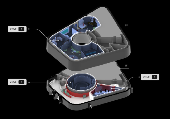 体验50年后的未来生活与产品。核心展区通过场景叙事,展现人类与仿生人共存的未来生活图景。借助高科技产品交织的故事情境,亲身感受人与机器人共生的明日世界。