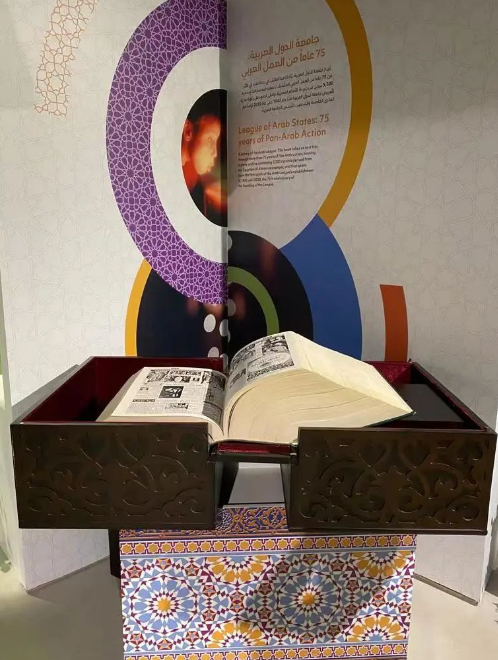 阿拉伯国家联盟馆已将该馆核心展品——《阿拉伯国家联盟:泛阿拉伯进程七十五年文献档案典藏》捐赠给世博馆。