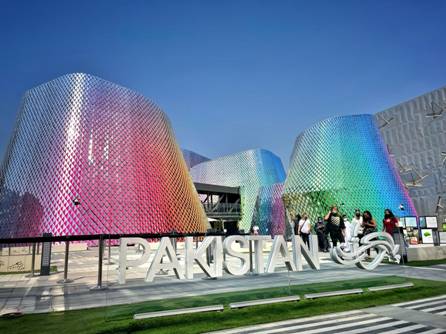 The "History Timeline" of the Pakistan Pavilion records different historical periods from the Neolithic Age to the founding of modern Pakistan in 1974.