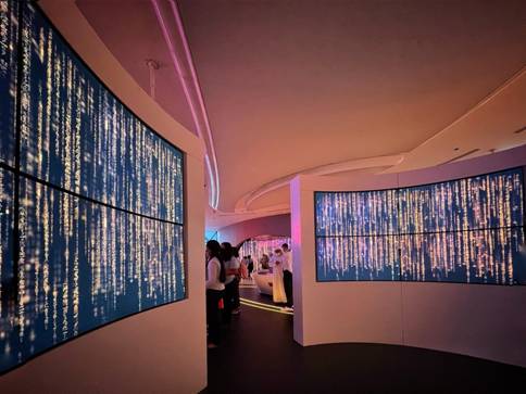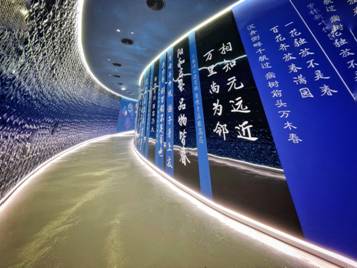 The Chinese pavilion's name is "The Light of China", which means hope and light, and ingeniously blends Chinese elements with modern technology. The two sides of the information space-time tunnel in the exhibition hall show important milestones in the development of communication and information technology, such as Oracle, Beacon, Post, Telegraph, Quantum, etc.