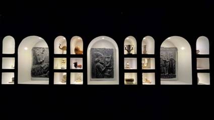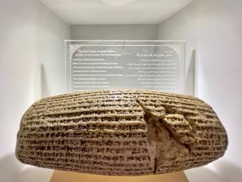 Panorama of the exhibition of a copy of the Ugarit alphabet (c. 1400 BC)