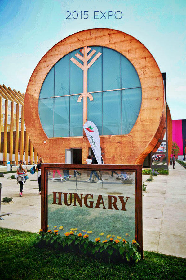 This year in Expo Milano, the pavilion takes the form of shamanic drums, representing Hungary’s ancient roots and highlighting its mystical relationship with nature. The shapes and materials composing the main features are typically Hungarian (including a barn, silos and stables).