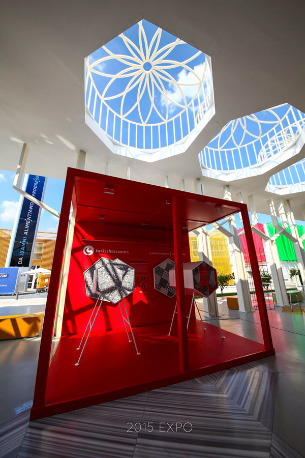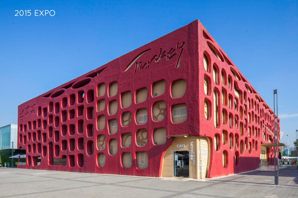 This time at Expo2015, The Turkey Pavilion provides a setting where a mixture of cultures and technologies come together and work towards a common belief. Turkey is eager to produce innovative solutions about the basic problems on the earth such as nutrition and energy. It occupies 4.170 square meters in a mix of open, semi-open and enclosed spaces, including a restaurant, souvenir shop, exhibition venues and a food bazaar.