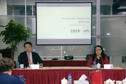 This was the third exhibition training for Expo Milano. Deputy Director Ruan Wei made an in-depth introduction to the situation of participation in Expo Milano from five aspects: overview of Expo Milano 2015, background of China's participation, highlights of China Pavilion and preparation of China Pavilion, and made a detailed analysis to the issues on the organizational structure, operational mode, etc. with the consideration of the questions proposed by the exhibition work team members. This training allowed the attendees to understand Expo Milano in a more substantive way.(4/16/2015)