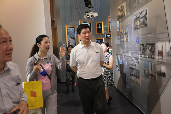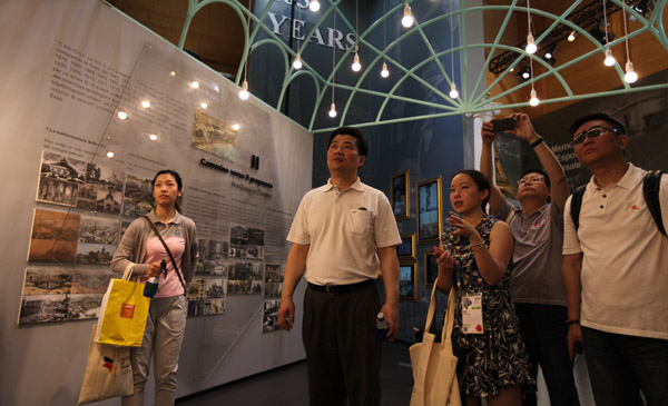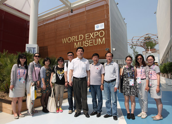On June 5, local time of Milano, Italy, Bei Zhaojian, Deputy Director General of Shanghai Municipal Culture, Radio Broadcasting, Film and Television Administration (SMCBFTA) and his delegation visited the Expo Park. In World Expo Museum Pavilion, Deputy Director General Bei Zhaojian acknowledged the VIP reception work of the pavilion, extended his warm regards to the staff of the pavilion and indicated that the frontline work was much more laborious than expected. He proposed that WEM shall consider from the longer-term and higher-end perspective to participate in the Expos in the years to come.