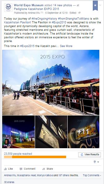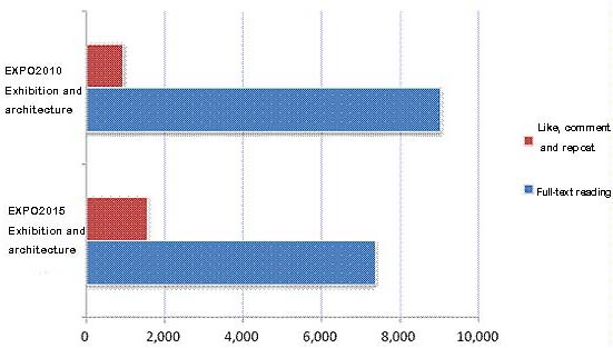 As of Sept. 8, this kind of report form had produced a positive influence in the park. Take "Italy Pavilion" of "The Marching History: From Shanghai to Milano" published on Facebook as an example, the User Reach had exceeded 250,000 and the fans interacted and responded enthusiastically, which were acknowledged and appreciated by the organizing committee and the exhibitors. (9/9/2015)
