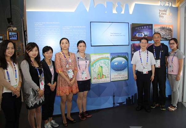 Recently, Zhou Hanmin, Vice Chairman of CPPCC Shanghai Committee and Former Deputy Director General of Bureau of Shanghai World Expo Coordination visited the World Expo Museum in Expo Milano and had group photos with the staff at the site. (9/15/2015)