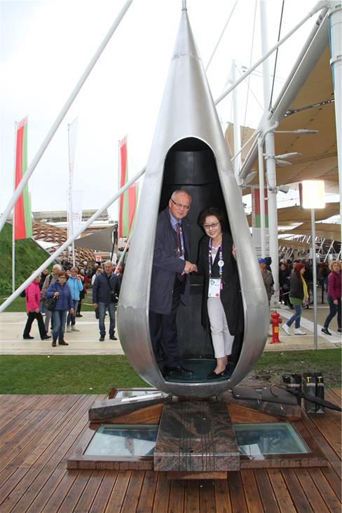 On Oct.26, 2015, local time of Milano, Lithuania Pavilion in Expo Milano donated an exhibit to the World Expo Museum--a Water Drop Sculpture. Jiang Sha, Curator of World Expo Museum Pavilion in Expo Milano awarded the donation certificate to Romas Jankauskas, General Representative of Lithuania Pavilion.
