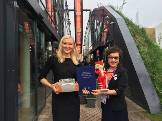 On Oct.28, 2015, local time of Milano, Belarus Pavilion in Expo Milano donated a straw plaited beaver exhibit to the World Expo Museum. Natali Kurash, Curator of Belarus Pavilion and Jiang Sha, Curator of World Expo Museum Pavilion in Expo Milano attended the donation ceremony.