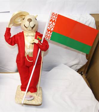 The exhibit donated by Belarus Pavilion--a piece of straw plaited beaver artware.