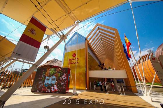 Spain Pavilion aimed to display the integration between the traditional Spanish food and the modern creative cuisine. The whole exterior space of the pavilion was seemingly telling the traditional Spanish cuisine, using varieties of materials for the decoration, such as wine bottle stoppers, oak barrels, thatch braided fabric (used to filtrate the olive oil).