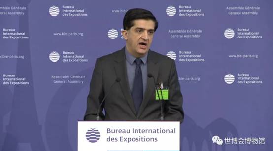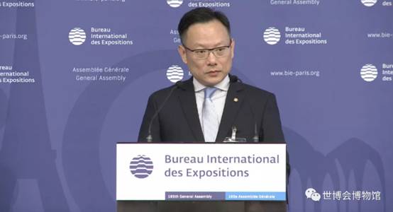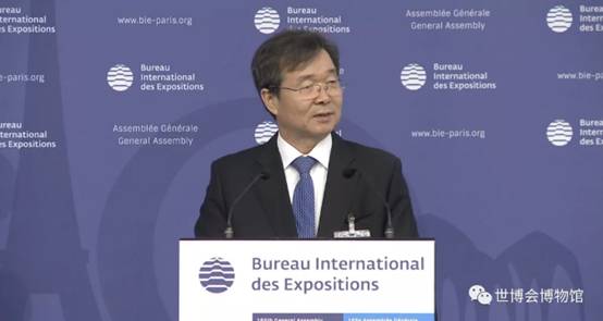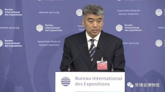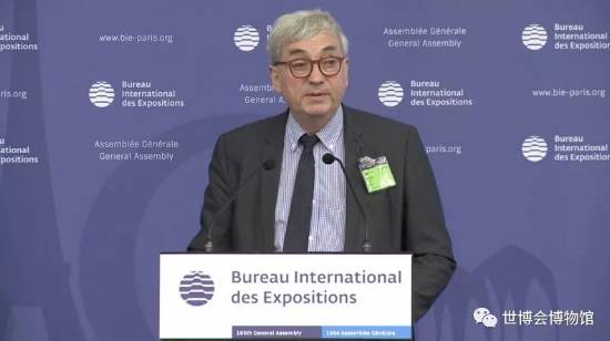 Mr.Yu Zhenyu, Deputy Director of the WEM, reported the progress of the WEM to the Assembly, mainly introducing the two-year operating performance of the WEM as of May 2019, such as the visitor's count, awards and honors, temporary exhibitions held by the WEM, literature research and activities of social education international exchanges. He also expressed sincere thanks to the Member States of the BIE, the organizers and participants of World Expos for their dedicated support and assistance to the WEM.