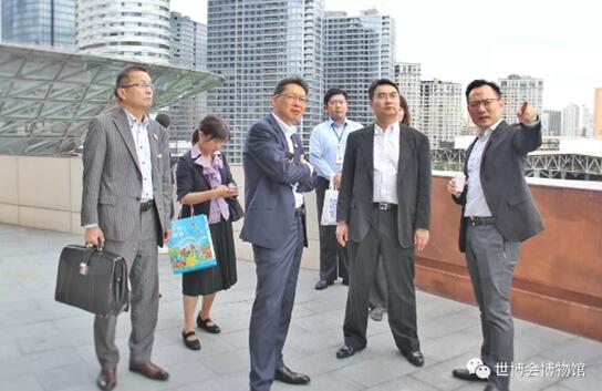 The Vice Mayor and the accompanying visitors boarded the rooftop viewing platform of the building to overlook the expo park of World Expo Shanghai 2010 bestriding both sides of the Huangpu River. They mainly wanted to know about the follow-up development and reuse of the World Expo.