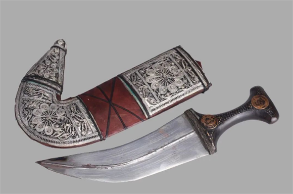 Also known as the Yemeni double-edged scimitar, it is worn around the waist by adult Arab men and can be worn by boys after their bar mitzvah as a symbol of status and position.