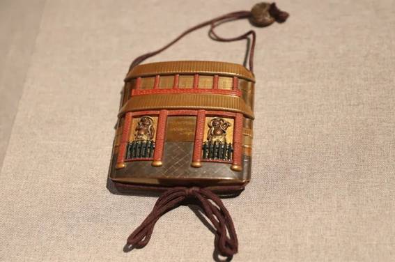 This piece of cage is a three-stage structure, the front of which depicts the King of Ren like a mountain gate. In Japan, the king of Ren is also called Vajra, the Buddha with a closed mouth is shaped like a, the Buddha with an open mouth is shaped like a moo, and in Chinese folk, it is known by the name of the two generals of Hemha. The back of the cage depicts pine trees in the mountains, suggesting that the temple was built deep in the mountains. There is a thread at the end of the rope, engraved with Tang grass, cranes and other patterns.