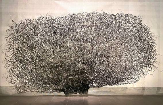 The work Symbiosis is presented in the form of a huge wall sculpture inspired by natural images and redirected towards imaginative nature. Plastic strapping as a material reflects the symbolism of consumerism in contemporary life. The artist uses the materials in people's lives to reshape their living forms in the language of art, representing the coexistence and symbiosis of civilizations. This form of expression is not only a form of artistic expression, but also a reflection and perception of social phenomena.