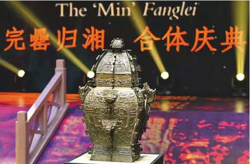 2014年,湖南省博物馆正式向纽约佳士得提出联合洽购皿方罍一事,以促成此青铜重器“身首合一,完罍归湘”。纽约佳士得经过与上拍皿方罍的委托方积极沟通后,于3月20日促成买卖双方圆满达成协议。6月28日,这件国宝级青铜器在历经百年的分离之后终于在湖南省博物馆和各界人士的帮助下实现合体,从此身首合一。