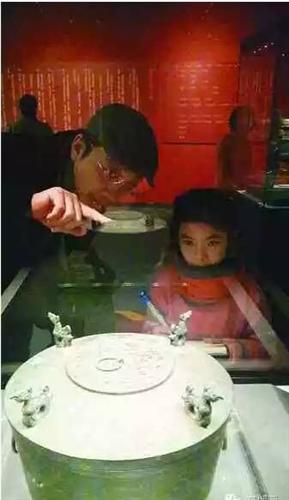 一位家长带着孩子参观“凤舞九天——楚文化特展”。(光明日报记者 李韵摄)