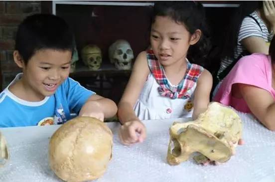 在李教授带领下,小朋友们走进了神秘的人骨实验室