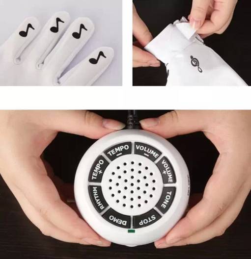 这款钢琴手套,只需要你带上去,然后在任意物体表面上就可以弹奏了。指尖上的传感器可以直接将你的弹奏通过链接的印象演绎出来。相当的炫酷噢。