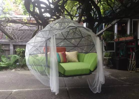 夏夜最美的一种享受就是躺在草地上数星星,凉爽、梦幻,设计师Richie Duncan希望可以将这种享受变得更加舒适安全,不如来个睡笼,吊在半空睡觉。